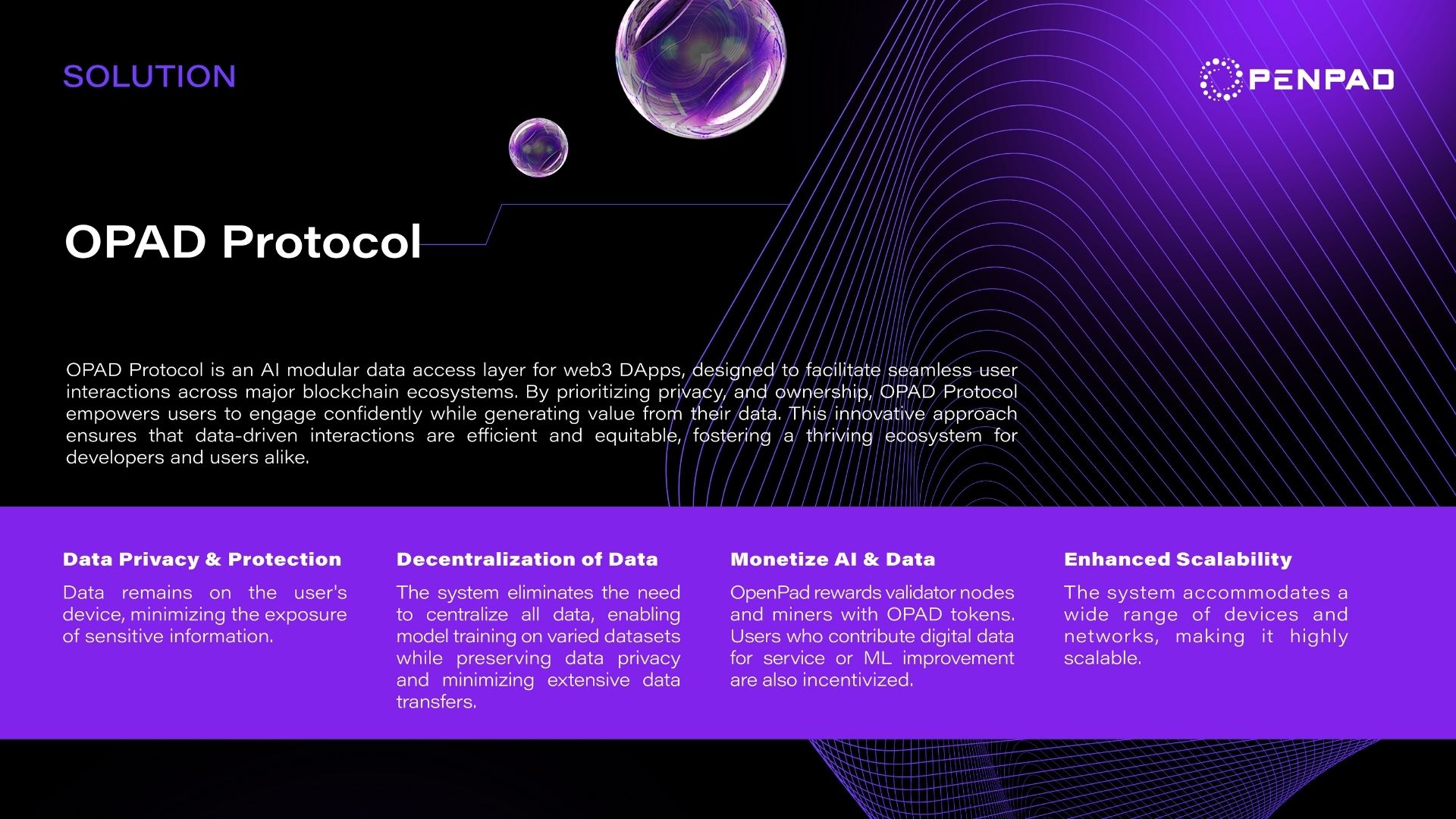 By prioritizing privacy, and ownership, OPAD Protocol empowers users to engage confidently while generating value from their data. This innovative approach ensures that data-driven interactions are efficient and equitable, fostering a thriving ecosystem for developers and users alike.